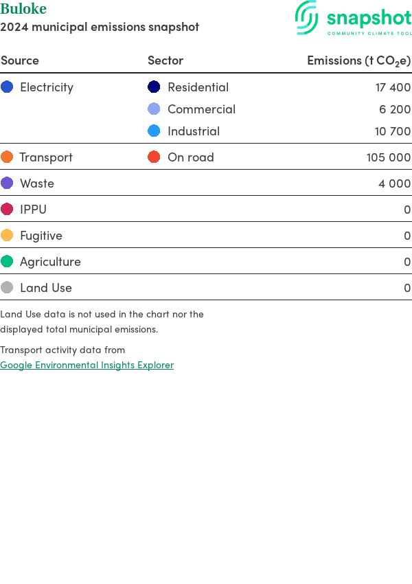 This report outlines the major sources of carbon emissions for the entire region (municipality, electorate, or state). Due to the approximate nature of the profile, the emission values are represented as rounded numbers. This report includes the following sources: