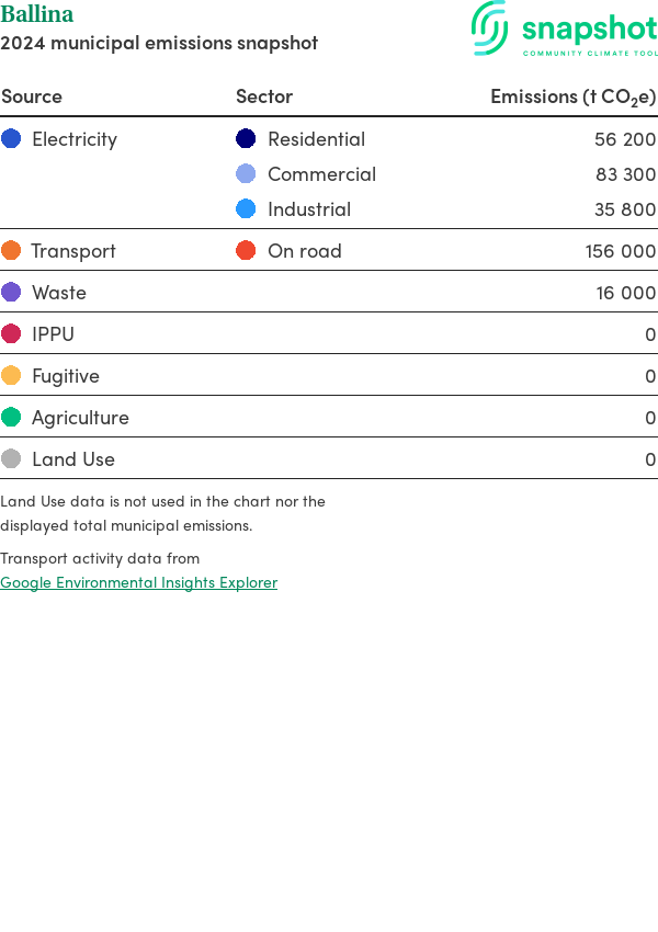This report outlines the major sources of carbon emissions for the entire region (municipality, electorate, or state). Due to the approximate nature of the profile, the emission values are represented as rounded numbers. This report includes the following sources: