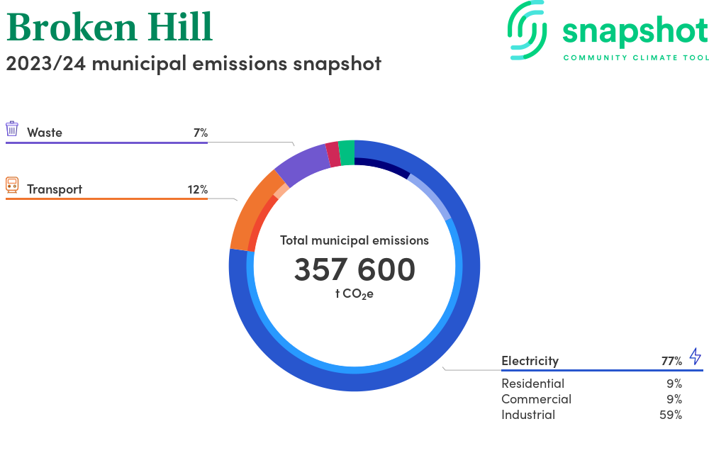 Broken Hill is a city that is geographically small relative to the state average and has a moderate urban density. Its major emissions source is electricity consumption with the majority of this coming from industrial electricity consumption.