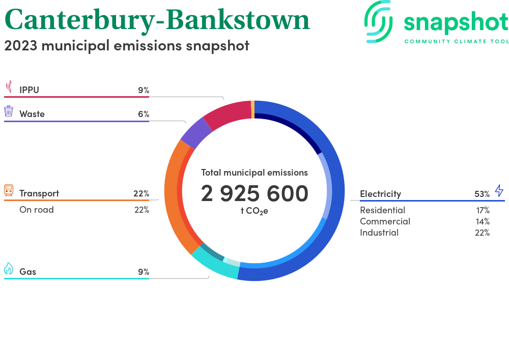 Canterbury-Bankstown is a regional area that is geographically small relative to the state average and has a very high urban density. Its major emissions source is electricity consumption with the majority of this coming from industrial electricity consumption.