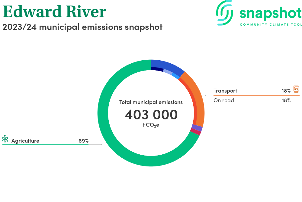 Edward River is a regional area that is large in geographical area relative to the state average and has a low urban density. Its major emissions source is agriculture, due to the community’s relatively large amount of agricultural activity and low population. The second largest source of emissions is on road transportation.