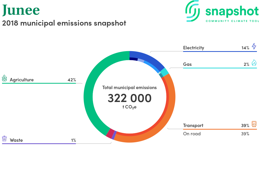 Junee is a regional area that is geographically small relative to the state average and has a low urban density. Its major emissions source is agriculture, due to the community’s relatively large amount of agricultural activity and low population. The second largest source of emissions is on road transportation.