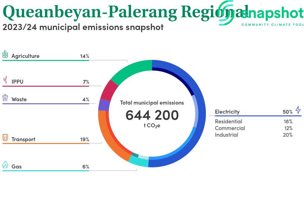 Queanbeyan-Palerang Regional is a regional area that is moderate in size relative to the state average and has a moderate urban density. Its major emissions source is electricity consumption with the majority of this coming from industrial electricity consumption.