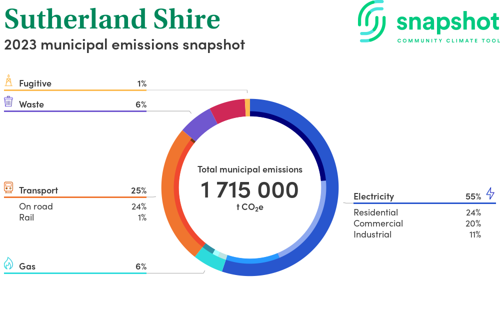 Sutherland Shire is a regional area that is geographically small relative to the state average and has a high urban density. Its major emissions source is electricity consumption with the majority of this coming from residential electricity consumption.