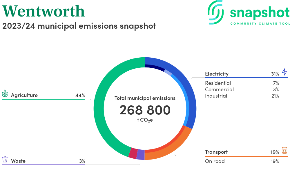 Wentworth is a regional area that is large in geographical area relative to the state average and has a very low urban density. Its major emissions source is agriculture, due to the community’s relatively large amount of agricultural activity and low population. The second largest source of emissions is electricity consumption.