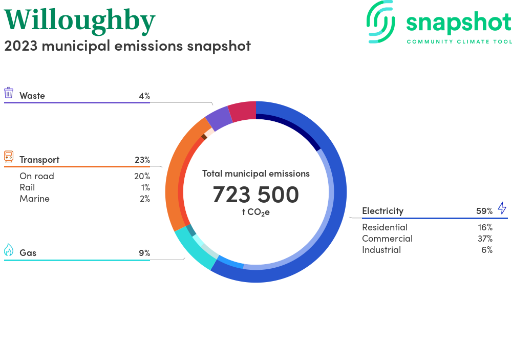 Willoughby is a city that is geographically very small relative to the state average and has a very high urban density. Its major emissions source is electricity consumption with the majority of this coming from commercial electricity consumption.
