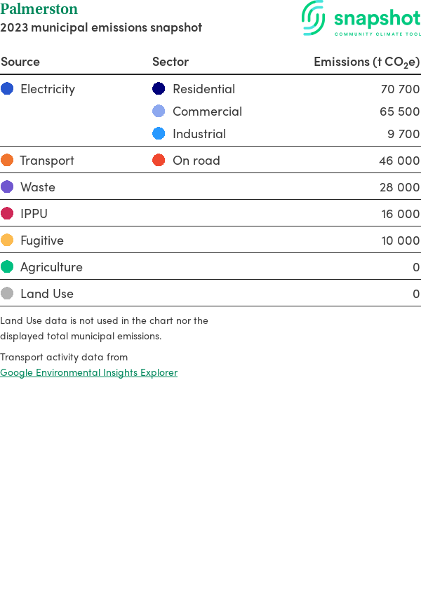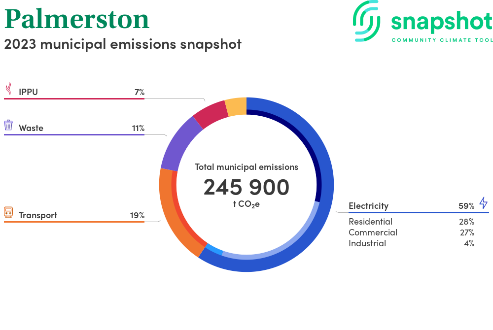 Palmerston is a city that is geographically very small relative to the state average and has a very high urban density. Its major emissions source is electricity consumption with the majority of this coming from residential electricity consumption.