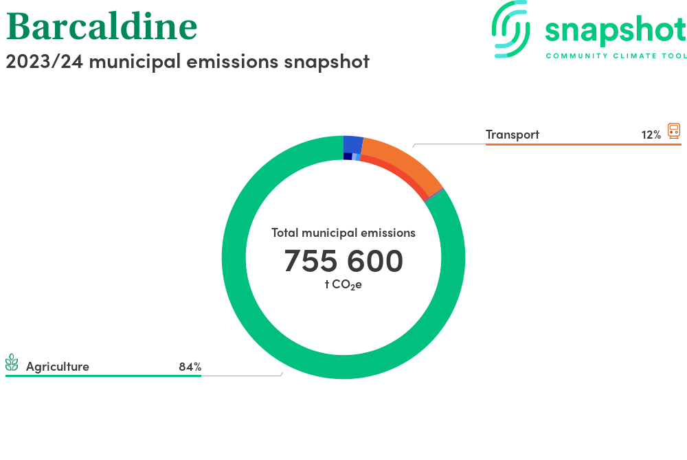 Barcaldine is a regional area that is very large in geographical area relative to the state average and has a low urban density. Its major emissions source is agriculture, due to the community’s relatively large amount of agricultural activity and low population. The second largest source of emissions is on road transportation.