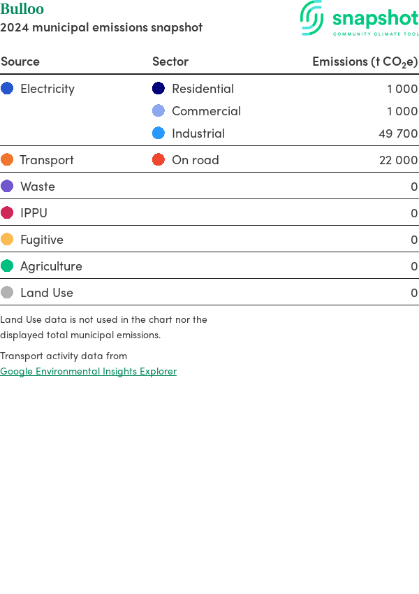 This report outlines the major sources of carbon emissions for the entire region (municipality, electorate, or state). Due to the approximate nature of the profile, the emission values are represented as rounded numbers. This report includes the following sources: