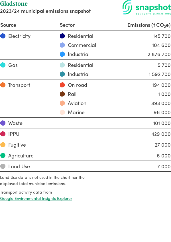 This report outlines the major sources of carbon emissions for the entire region (municipality, electorate, or state). Due to the approximate nature of the profile, the emission values are represented as rounded numbers. This report includes the following sources: