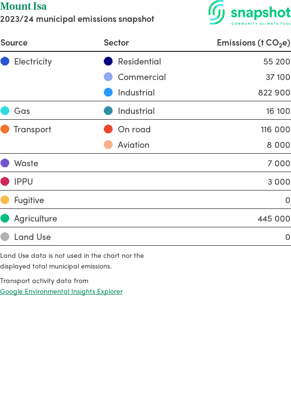 This report outlines the major sources of carbon emissions for the entire region (municipality, electorate, or state). Due to the approximate nature of the profile, the emission values are represented as rounded numbers. This report includes the following sources: