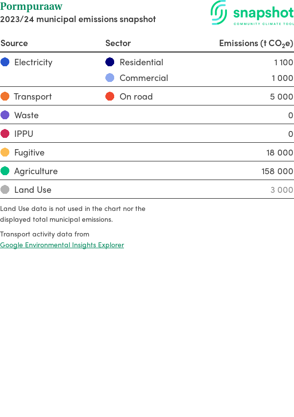 This report outlines the major sources of carbon emissions for the entire region (municipality, electorate, or state). Due to the approximate nature of the profile, the emission values are represented as rounded numbers. This report includes the following sources: