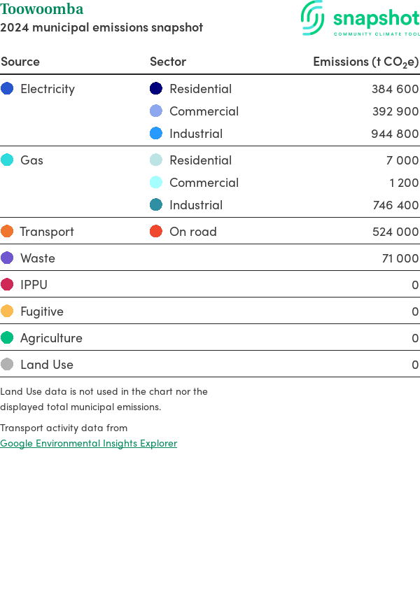 This report outlines the major sources of carbon emissions for the entire region (municipality, electorate, or state). Due to the approximate nature of the profile, the emission values are represented as rounded numbers. This report includes the following sources: