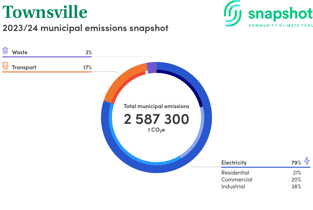 Townsville is a city that is moderate in size relative to the state average and has a high urban density. Its major emissions source is electricity consumption with the majority of this coming from industrial electricity consumption.
