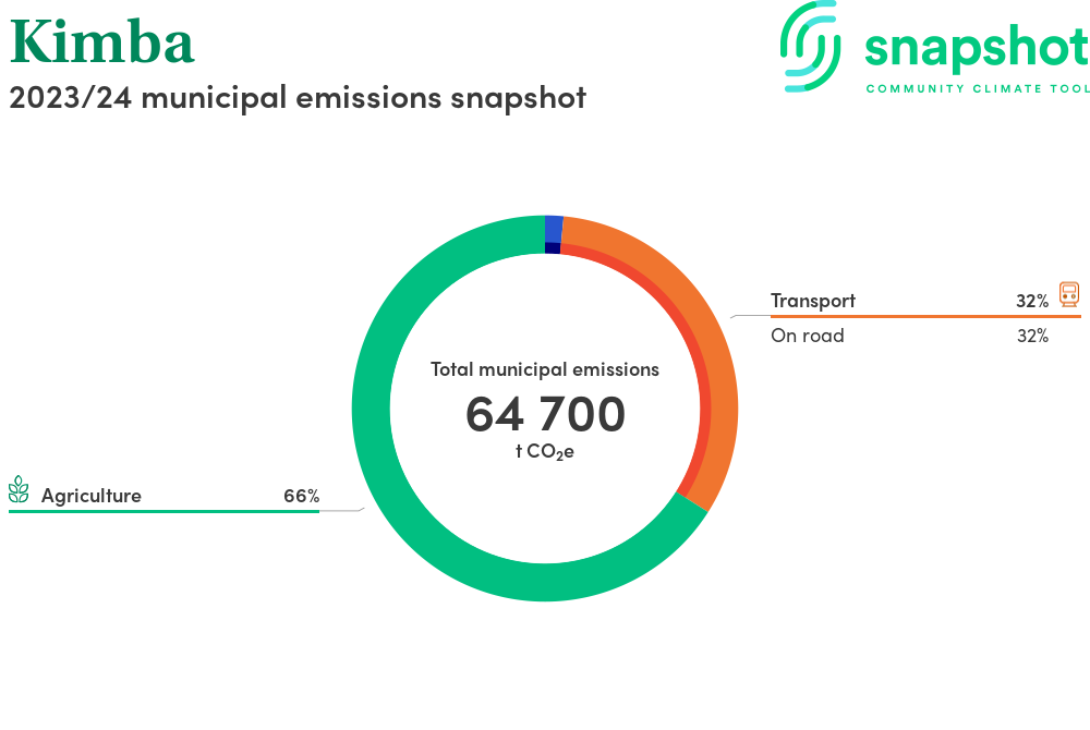 Kimba is a district council area that is moderate in size relative to the state average and has a very low urban density. Its major emissions source is agriculture, due to the community’s relatively large amount of agricultural activity and low population. The second largest source of emissions is on road transportation.