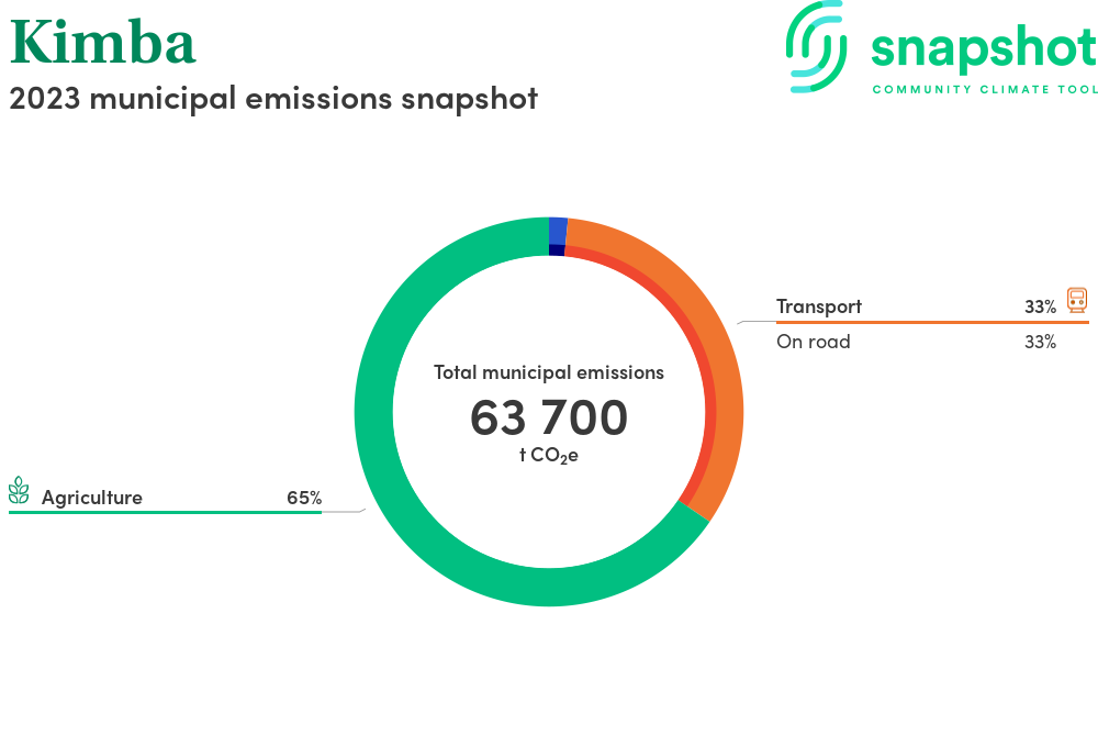 Kimba is a district council area that is moderate in size relative to the state average and has a very low urban density. Its major emissions source is agriculture, due to the community’s relatively large amount of agricultural activity and low population. The second largest source of emissions is on road transportation.
