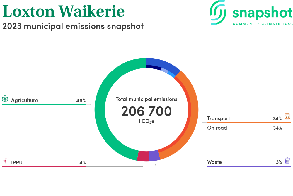 Loxton Waikerie is a district council area that is large in geographical area relative to the state average and has a low urban density. Its major emissions source is agriculture, due to the community’s relatively large amount of agricultural activity and low population. The second largest source of emissions is on road transportation.