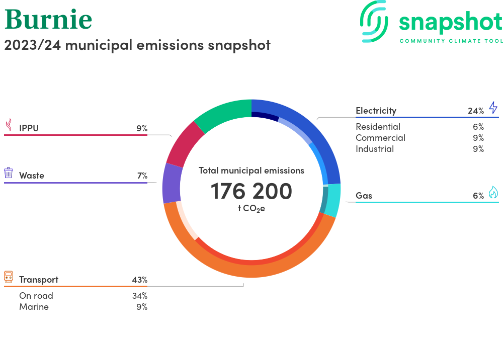 Burnie is a city that is geographically small relative to the state average and has a moderate urban density. Its major emissions source is electricity consumption, due to the community’s scale of population and commercial activity. The second largest source of emissions is on road transportation.