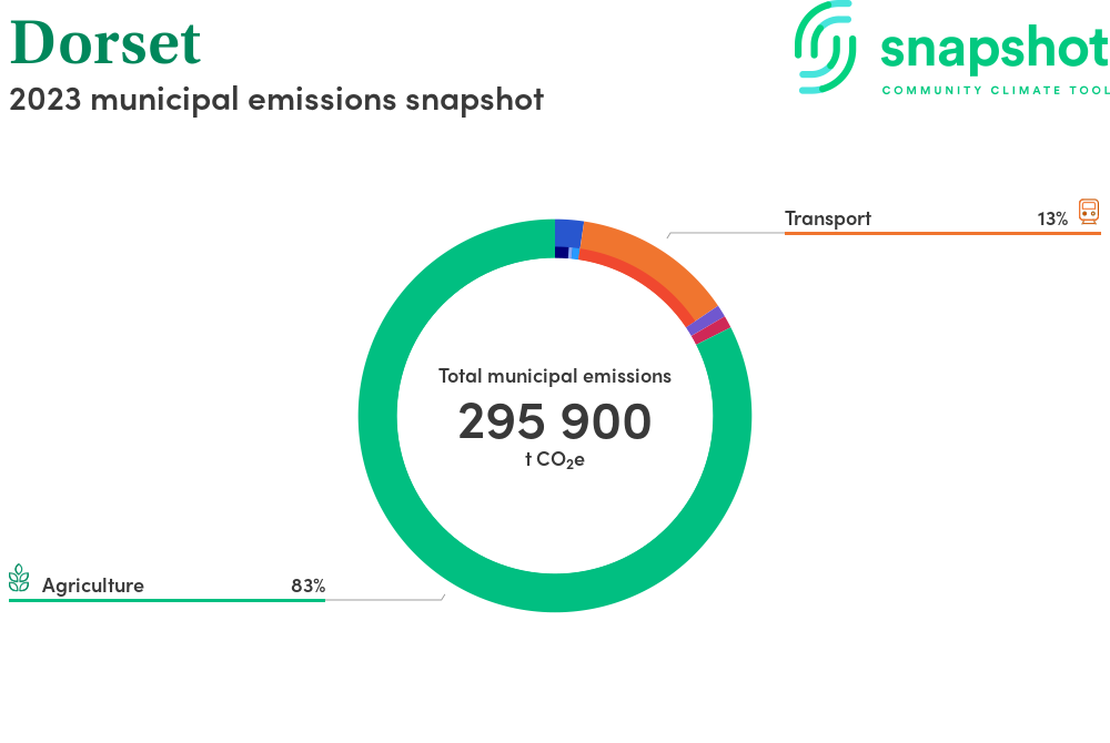Dorset is a municipality that is moderate in size relative to the state average and has a low urban density. Its major emissions source is agriculture, due to the community’s relatively large amount of agricultural activity and low population. The second largest source of emissions is on road transportation.