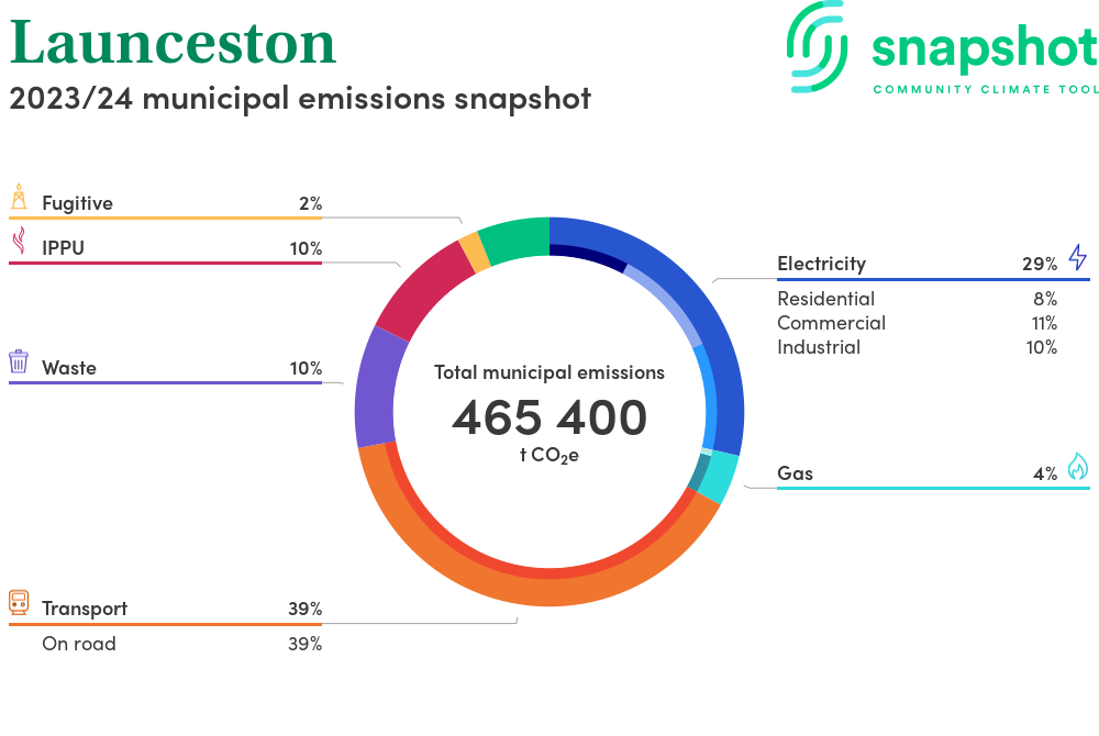 Launceston is a city that is geographically small relative to the state average and has a high urban density. Its major emissions source is electricity consumption, due to the community’s scale of population and commercial activity. The second largest source of emissions is on road transportation.