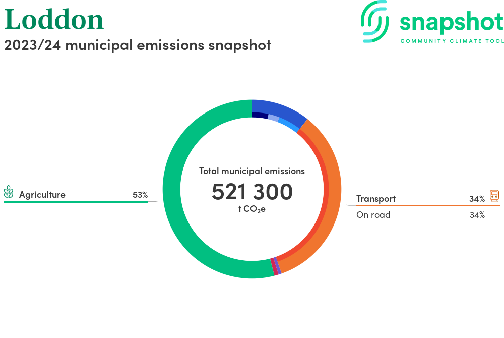 Loddon is a rural municipality that is moderate in size relative to the state average and has a very low urban density. Its major emissions source is agriculture, due to the community’s relatively large amount of agricultural activity and low population. The second largest source of emissions is on road transportation.