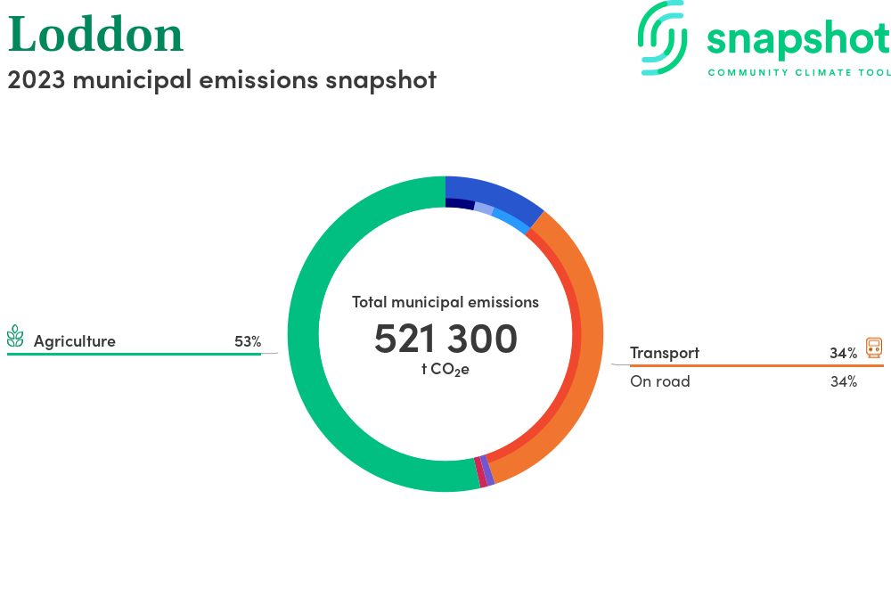 Loddon is a rural municipality that is moderate in size relative to the state average and has a very low urban density. Its major emissions source is agriculture, due to the community’s relatively large amount of agricultural activity and low population. The second largest source of emissions is on road transportation.