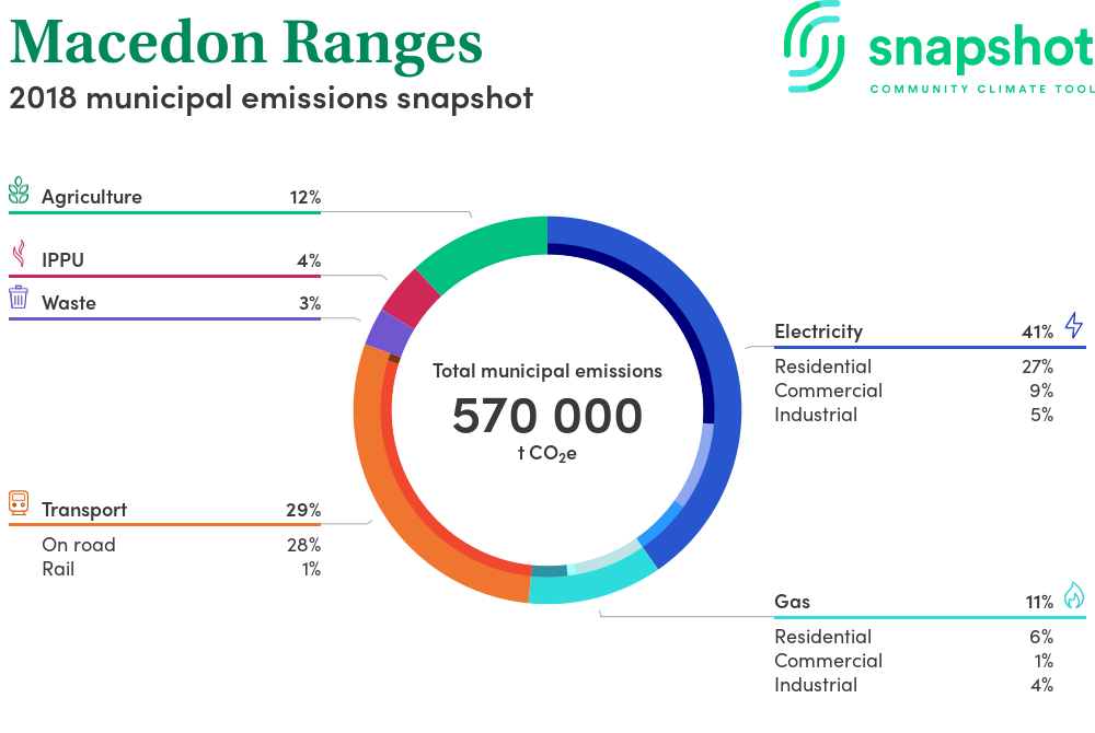 Macedon Ranges is a rural municipality that is geographically small relative to the state average and has a moderate urban density. Its major emissions source is electricity consumption with the majority of this coming from residential electricity consumption.