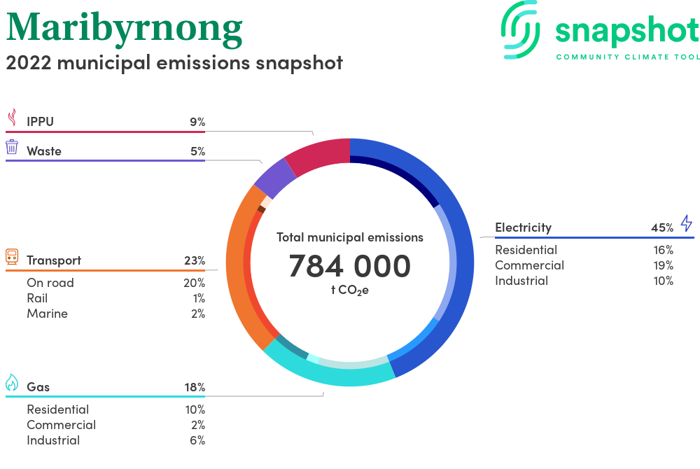 Maribyrnong is a city that is geographically very small relative to the state average and has a high urban density. Its major emissions source is electricity consumption with the majority of this coming from commercial electricity consumption.