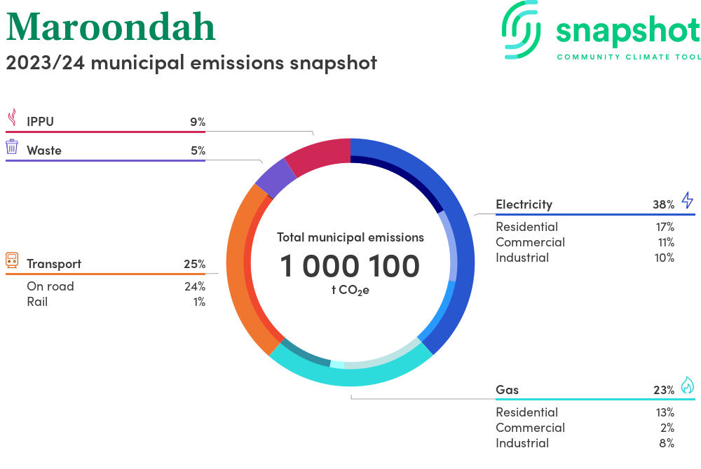 Maroondah is a city that is geographically very small relative to the state average and has a high urban density. Its major emissions source is electricity consumption, due to the community’s scale of population and commercial activity. The second largest source of emissions is gas consumption.