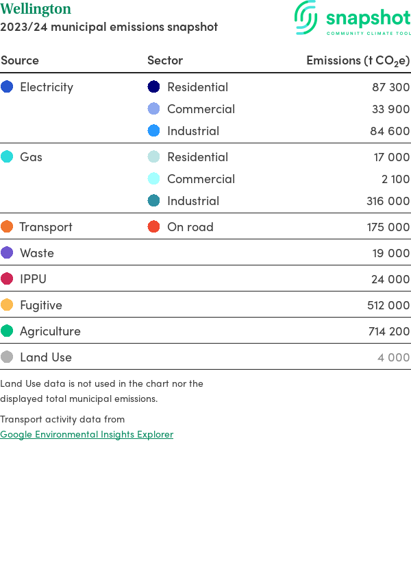 This report outlines the major sources of carbon emissions for the entire region (municipality, electorate, or state). Due to the approximate nature of the profile, the emission values are represented as rounded numbers. This report includes the following sources: