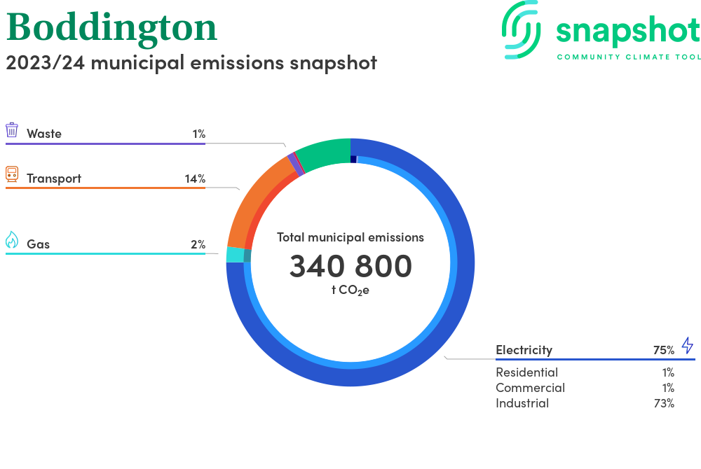 Boddington is a rural municipality that is geographically small relative to the state average and has a moderate urban density. Its major emissions source is electricity consumption with the majority of this coming from industrial electricity consumption.