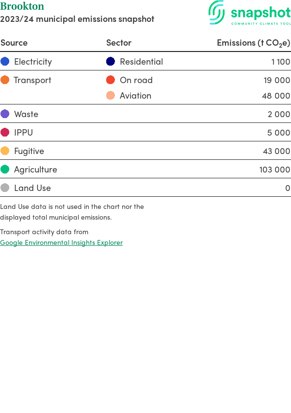 This report outlines the major sources of carbon emissions for the entire region (municipality, electorate, or state). Due to the approximate nature of the profile, the emission values are represented as rounded numbers. This report includes the following sources: