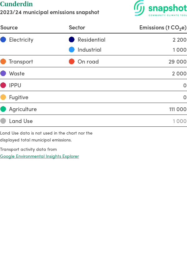 This report outlines the major sources of carbon emissions for the entire region (municipality, electorate, or state). Due to the approximate nature of the profile, the emission values are represented as rounded numbers. This report includes the following sources: