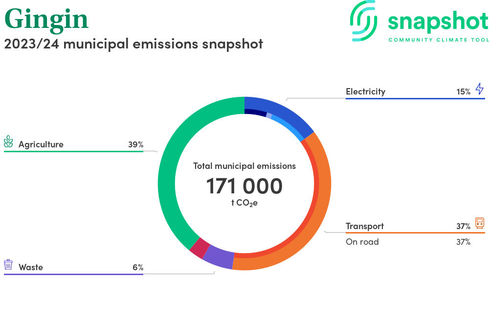 Gingin is a rural municipality that is moderate in size relative to the state average and has a moderate urban density. Its major emissions source is agriculture, due to the community’s relatively large amount of agricultural activity and low population. The second largest source of emissions is on road transportation.