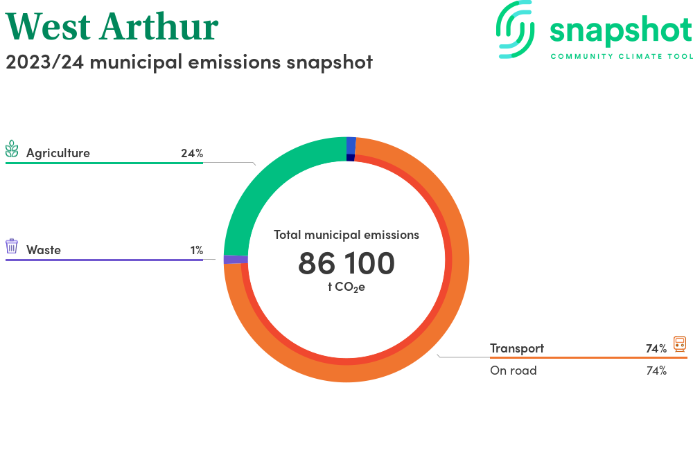 Westonia is a rural municipality that is moderate in size relative to the state average and has a low urban density. Its major emissions source is agriculture, due to the community’s relatively large amount of agricultural activity and low population. The second largest source of emissions is industrial electricity consumption.
